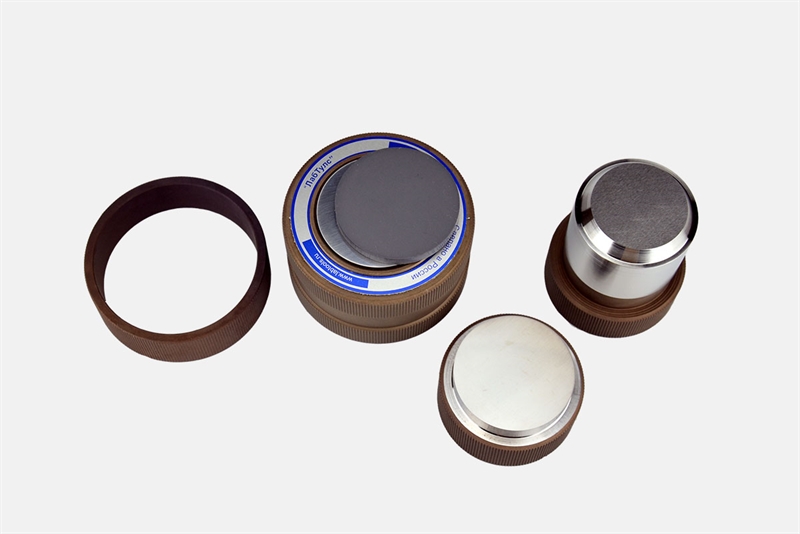 The circular section die sets are used for production of samples. The die sets implement “free pressing” into a pellet. The diameter of the obtained pellet depends on the manufacturer and the model of the X-ray spectrometer, by which the elemental analysis is conducted.