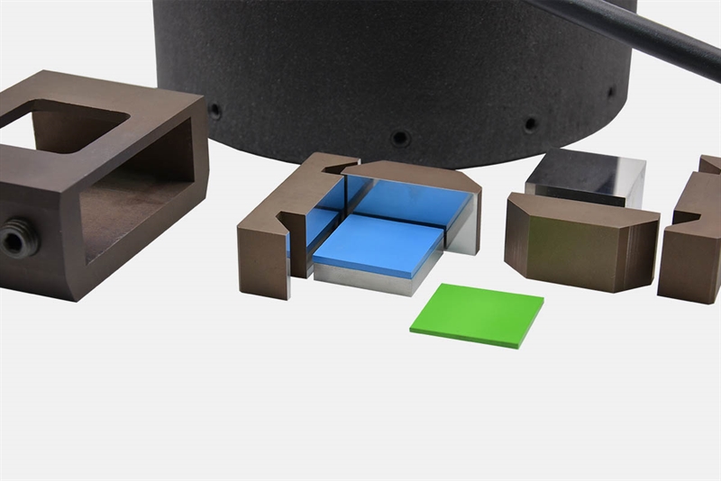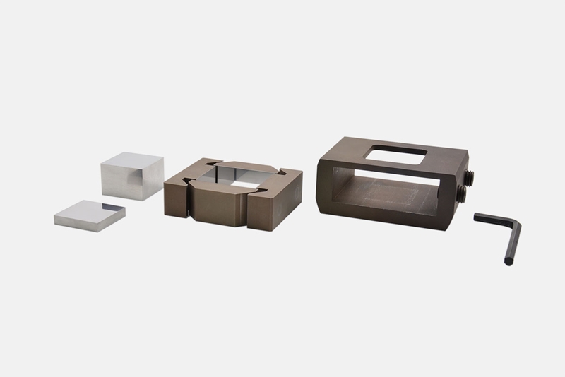 The design feature of collapsible rectangular section die sets is that the matrix after its pressing is disassembled into 4 parts (walls), and the sample is removed from the stopper bottom. With a non-separable design, the sample is squeezed out of the matrix by the punch into the ring zone and if the material is brittle and little-plastic it may be damaged.