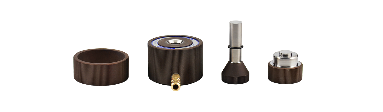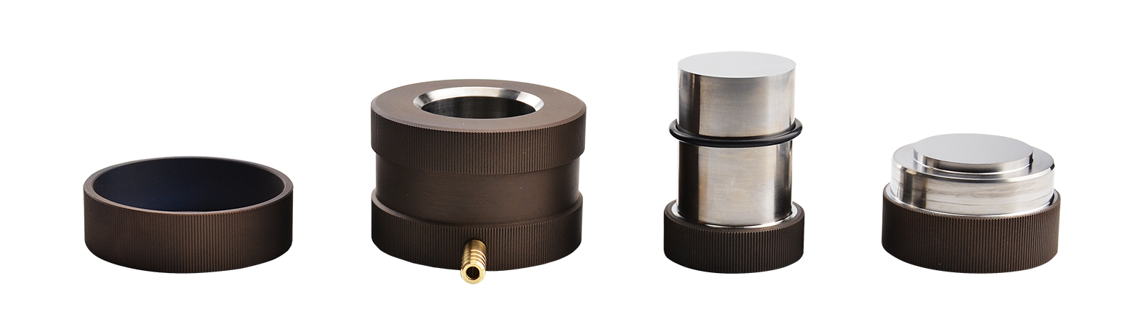 - Work surface grinding (Ra0.08) provides an ideal sample surface and eliminates sample sticking on the ends of the punches.